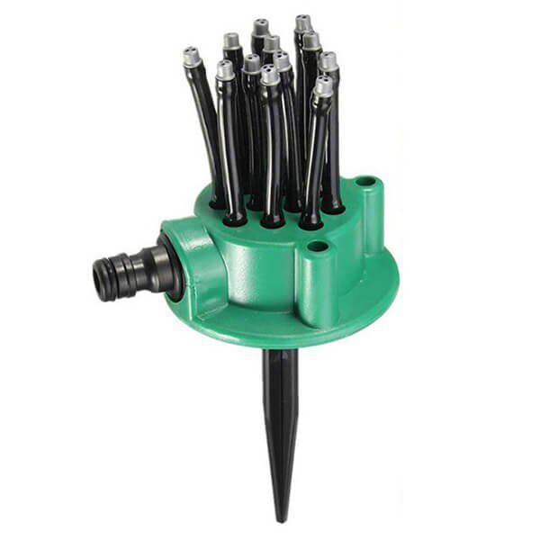 This sprinkler comes equipped with 12 flexible hoses, each with adjustable nozzles that rotate in all directions. This feature allows for complete 360-degree coverage, ensuring every part of your garden gets watered, regardless of its shape or size. Simply bend and direct the hoses to create your desired watering pattern, adapting as your garden grows.