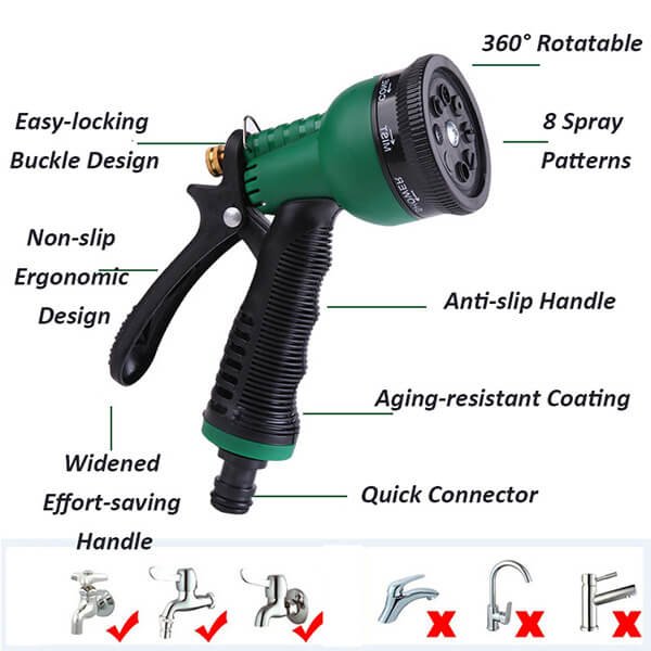 EVERPEAK’s 8-Function Plastic Garden Hose Nozzle Water Spray Gun is a versatile and robust tool designed to meet all your gardening and cleaning needs. This multifunctional spray gun is an essential addition to your gardening toolkit, providing a seamless experience with its innovative features and durable construction.