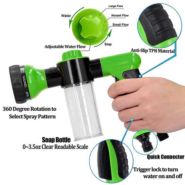EVERPEAK’s 8 Modes Adjustable Garden Hose Nozzle with Soap Dispenser stands out for its combination of high-quality materials, innovative design, and versatile functionality. Whether you’re watering your garden, cleaning your patio, or washing your car, this nozzle delivers excellent performance and convenience.