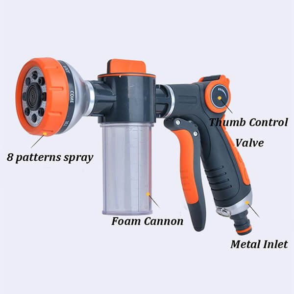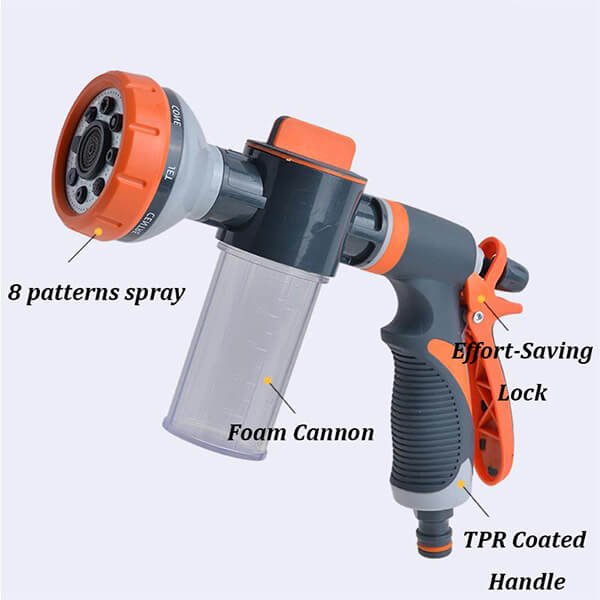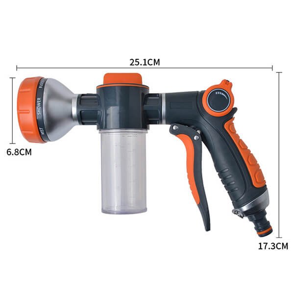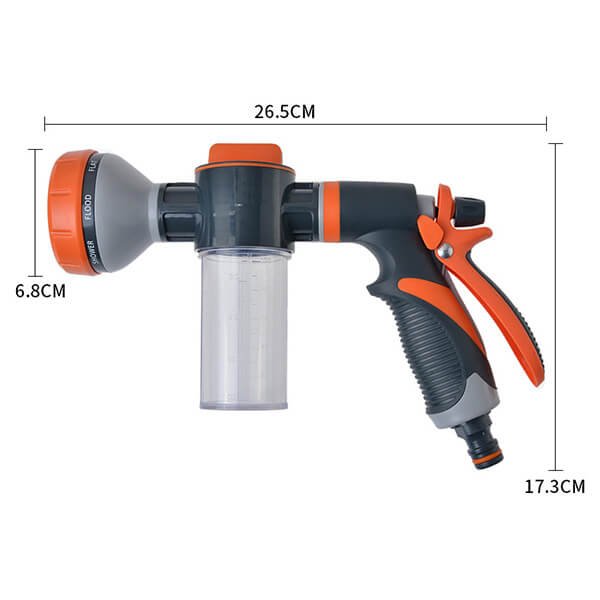 Made from high-quality materials, the Foam Gun is designed for durability and long-lasting use. Its sturdy construction ensures it can withstand extended periods of use without showing signs of wear and tear, making it a reliable tool for all your watering and cleaning needs.