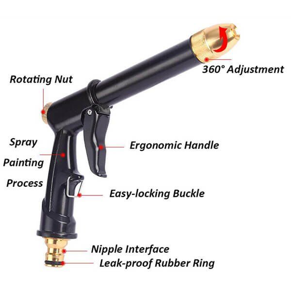 The EVERPEAK Alloy Long Rod Garden Hose Nozzle is a high-quality, durable tool that outperforms traditional nozzles. Made from corrosion-resistant metals such as stainless steel, aluminum alloy, and copper, this nozzle is designed to withstand the elements and provide long-lasting performance. The rubber-wrapped metal handle ensures a comfortable grip even in cold weather, and the labor-saving buckles reduce hand fatigue during extended use.