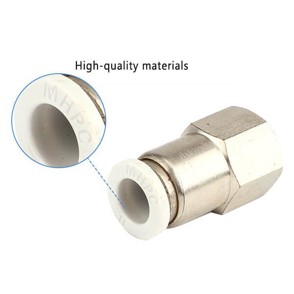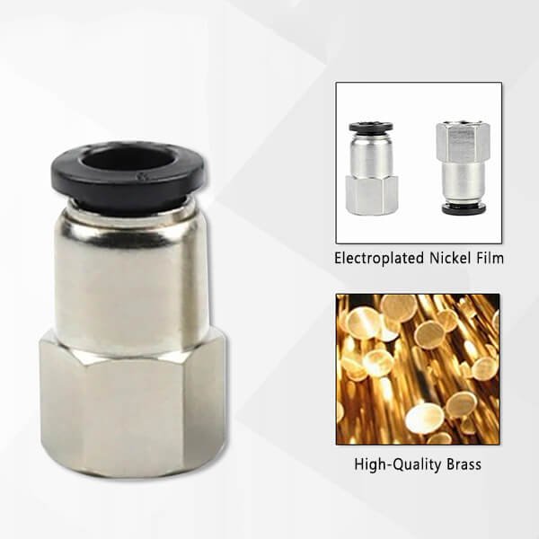 EVERPEAK introduces the PCF Female Straight NPT Thread Push-to-Connect Fitting, designed for easy and efficient connections in pneumatic systems. This high-quality fitting is made from nickel-plated brass and features a POM release sleeve and stainless steel tube gripping claw, ensuring durability and reliable performance. It provides a secure and leak-free connection for various applications, making it an essential component for your pneumatic needs.