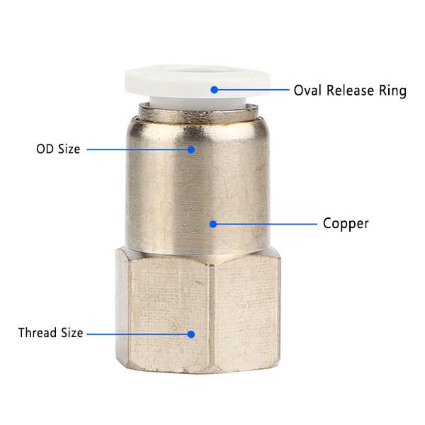 | PCF 6-04(Copper) | 6mm | 1/2inch | NPT | 0-1.0mpa | 0-150psi | 0-60°C | 32~140°F |