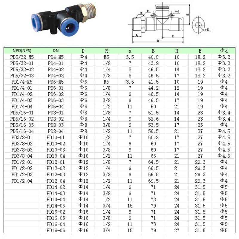 The PD Pneumatic Air Connector Straight Hose Fittings are essential components designed for connecting pipes and tubing in pneumatic systems. This run tee fitting features female connections on one straight end and the branch, with a male connection on the other straight end, making it versatile for various applications. The push-to-connect design ensures quick and secure connections without the need for tools or sealants, making installation easy and efficient.