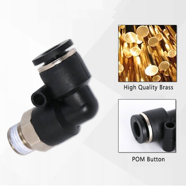 The PL NPT 90 Degree Male Elbow Quick Connectors by EVERPEAK are designed for optimal performance in pneumatic and hydraulic systems. Key features include: