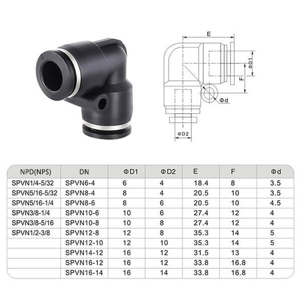 With a maximum pressure resistance of up to 1.32 MPa, the PV Elbow Quick Connector ensures a secure and leak-proof connection, while the elliptical release rings at both ends make it easy to disconnect when needed.